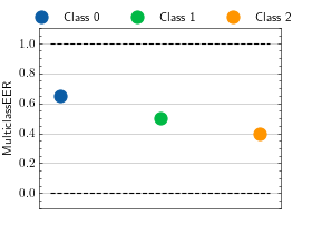 >>> # Example plotting a single >>> import torch >>> from torchmetrics.classification import MulticlassEER >>> metric = MulticlassEER(num_classes=3) >>> metric.update(torch.randn(20, 3), torch.randint(3,(20,))) >>> fig_, ax_ = metric.plot()