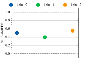 >>> # Example plotting a single >>> import torch >>> from torchmetrics.classification import MultilabelEER >>> metric = MultilabelEER(num_labels=3) >>> metric.update(torch.rand(20,3), torch.randint(2, (20,3))) >>> fig_, ax_ = metric.plot()