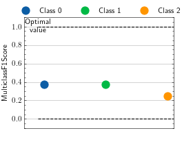 >>> from torch import randint >>> # Example plotting a single value per class >>> from torchmetrics.classification import MulticlassF1Score >>> metric = MulticlassF1Score(num_classes=3, average=None) >>> metric.update(randint(3, (20,)), randint(3, (20,))) >>> fig_, ax_ = metric.plot()
