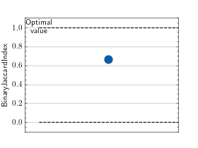 >>> # Example plotting a single value >>> from torch import rand, randint >>> from torchmetrics.classification import BinaryJaccardIndex >>> metric = BinaryJaccardIndex() >>> metric.update(rand(10), randint(2,(10,))) >>> fig_, ax_ = metric.plot()