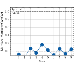 >>> from torch import rand, randint >>> # Example plotting multiple values >>> from torchmetrics.classification import MultilabelMatthewsCorrCoef >>> metric = MultilabelMatthewsCorrCoef(num_labels=3) >>> values = [ ] >>> for _ in range(10): ... values.append(metric(randint(2, (20, 3)), randint(2, (20, 3)))) >>> fig_, ax_ = metric.plot(values)